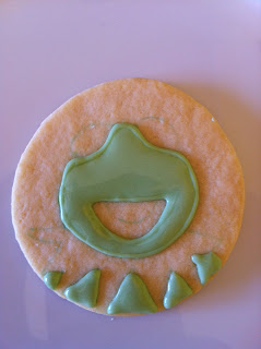 Verónica, amiga de una de las hermanas del Lobo, me dijo que quería hacerme un encargo de galletas para el bautizo de sus mellizos! Me puse muy contenta porqué nunca había hecho galletas de bebé, así que hice un pedido por internet de varios cortadores: un cochecito, un mono de bebé, un caballito, un osito... y empecé a pensar en cómo haría las galletas,que si un cochecito rosa, un trajecito azul cielo... Le pregunté el nombre de los mellizos para saber si eran 2 niños o un niño y una niña y cuando me respondió: Axel y Max, ya vi que debía desterrar el color rosa!! Además me dijo que había visto un cupcake que hice del monstruo de las galletas y que eso era lo que quería!! Total que a tomar viento los cortadores nuevos, hasta otra ocasión!! Después me dijo que también quería al reportero más dicharachero del barrio... así que hice 2 versiones de cada. Un monstruo con y sin galleta y un Gustavo con fondant y otro con glasa real. Verónica eligió el monstruo sin galleta y el Gustavo de fondant.